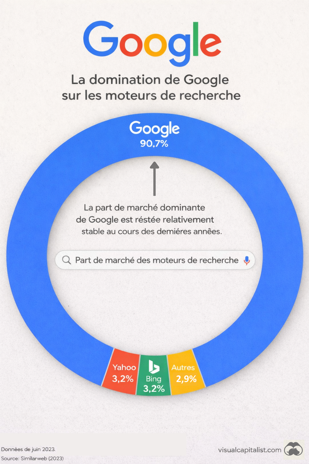 Google détient plus de 90 % des parts de marché de la recherche en ligne, tandis que Yahoo est tombé à 3,2 %.