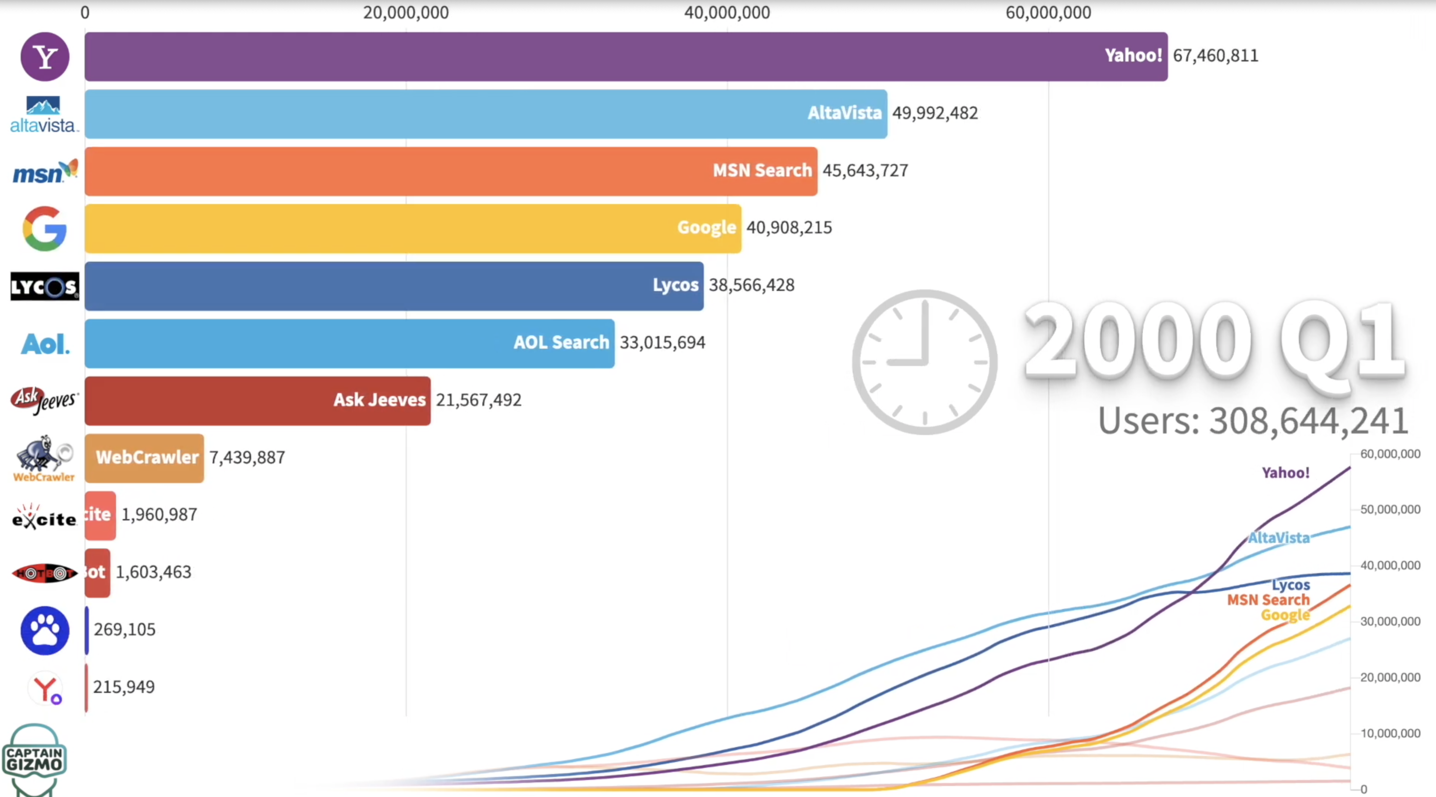 Et je suis justement tombé sur une vidéo qui montre à quoi ressemblait les parts de marché des moteurs de recherche dans les années 2000 :