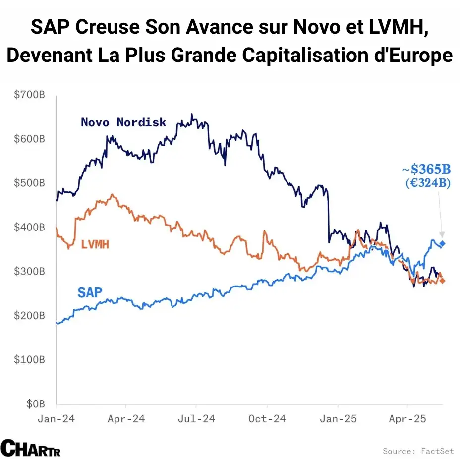 Le leader mondial des logiciels pour entreprises (ERP) est désormais la plus grande capitalisation boursière européenne (324 Mds €).