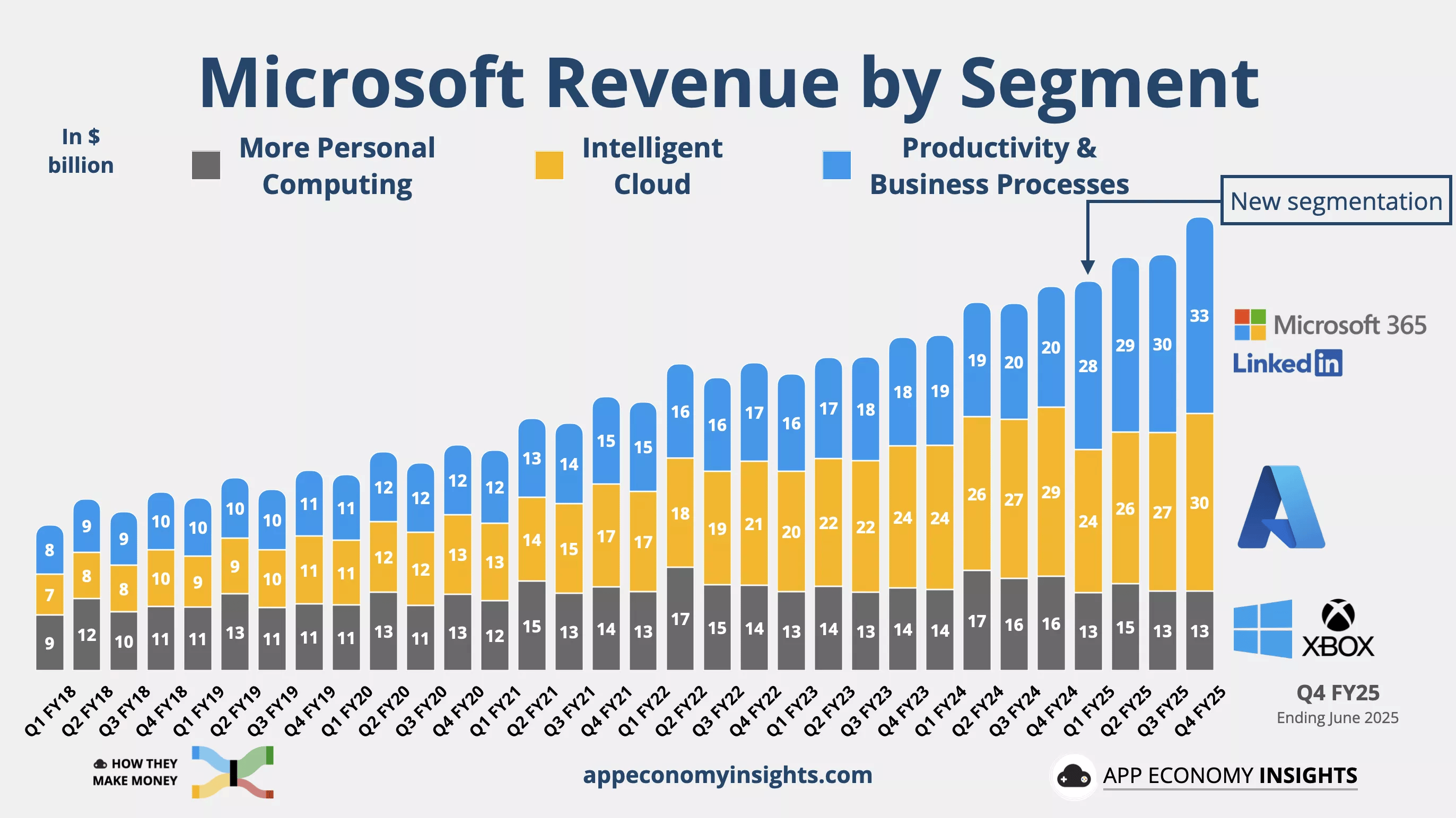 Sans surprise, ce sont aujourd’hui aussi les 2 segments les plus profitables de Microsoft :