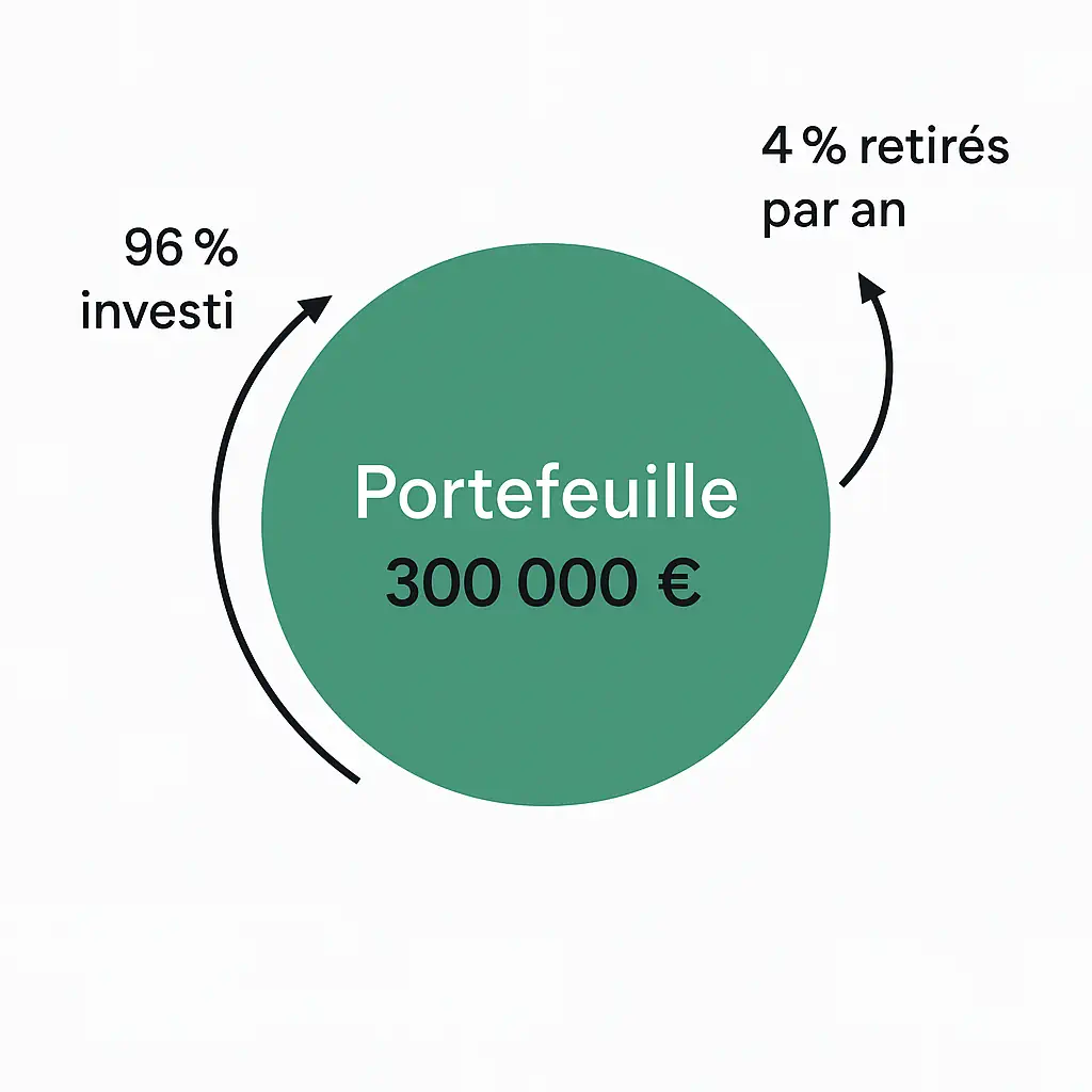 Cette rĂšgle dit que vous pouvez retirer 4% de votre portefeuille chaque annĂ©e, sans jamais lâĂ©puiser, car les 96% restants continuent Ă croĂźtre avec vos actions.