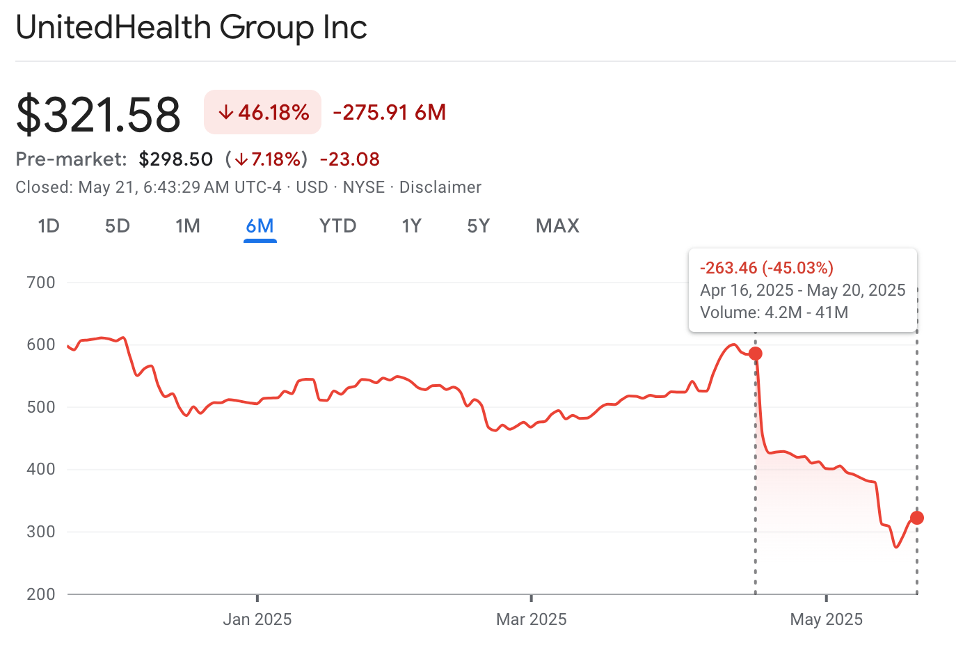 🩺 2. UnitedHealth prend -45% en 1 mois