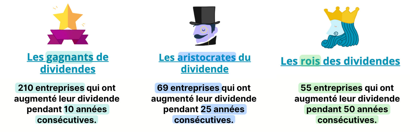 Une approche plus saine est de se focaliser sur les années consécutives d'augmentation du dividende : c'est une preuve que l'entreprise est profitable et a les moyens de reverser chaque année plus d'argent à ses actionnaires.
