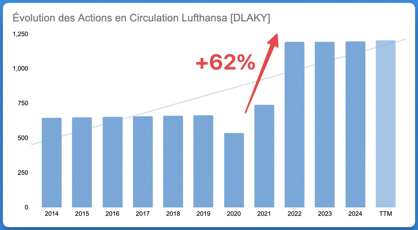 Cette explosion est notamment due à des augmentations massives du nombre d'actions (dont une de +62 % en 2021), nécessaires pour se refinancer après la crise du Covid avec l’aide de l’État allemand.